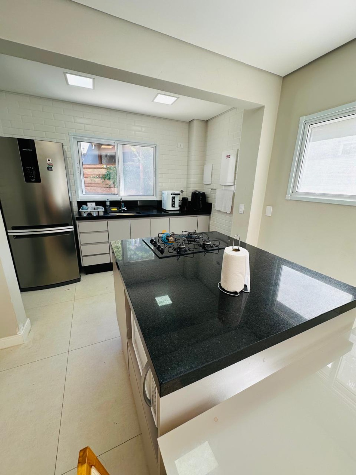 A cozinha é funcional e bem distribuída, e o lavabo oferece praticidade para visitas.